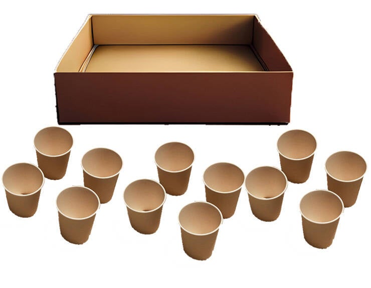 J'ai une idée pour vous. Voici ce dont vous aurez besoin : Un boîte vide (à chaussure, par exemple), quelques gobelets en carton (utilisez ceux qui vous reste dans de votre dernier pique-nique ou anniversaire...)